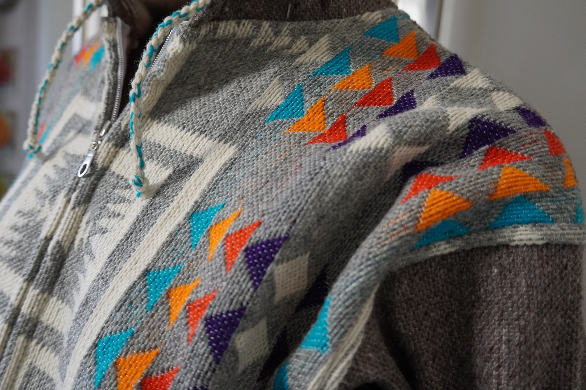 The premium "Inti" jacket is a handcrafted masterpiece made of 100% sheep's wool, characterized by quality and warmth. Its name comes from the Quechua language and represents the sun, which symbolizes life and energy.