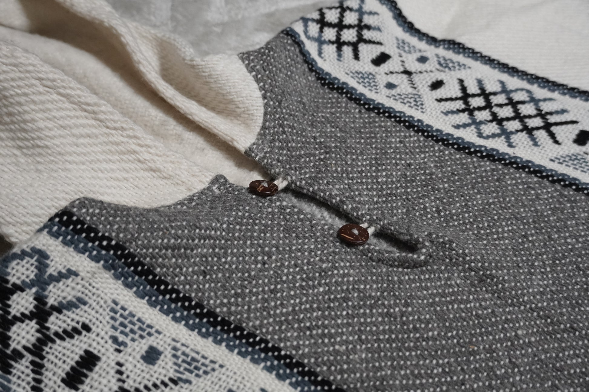 The premium "Wayra" poncho is a handcrafted masterpiece made from 100% sheep's wool that stands out for its quality and warmth. Its name, derived from Quechua, represents the wind, a symbol of movement and freedom.