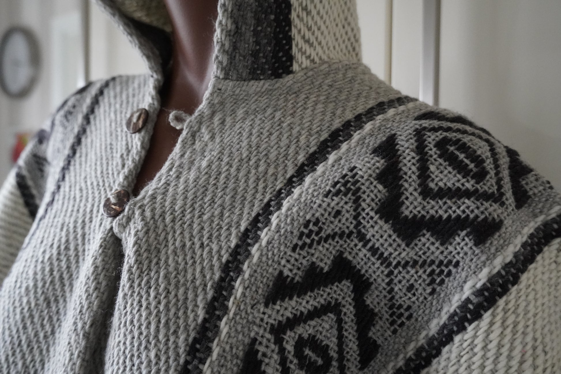 The premium Chakana poncho is a handcrafted masterpiece made of 100% sheep's wool that stands out for its quality and warmth. Its name, which comes from Quechua, represents the Andean cross, a symbol of balance and cosmos. The same cross is represented in the fabric of the poncho.