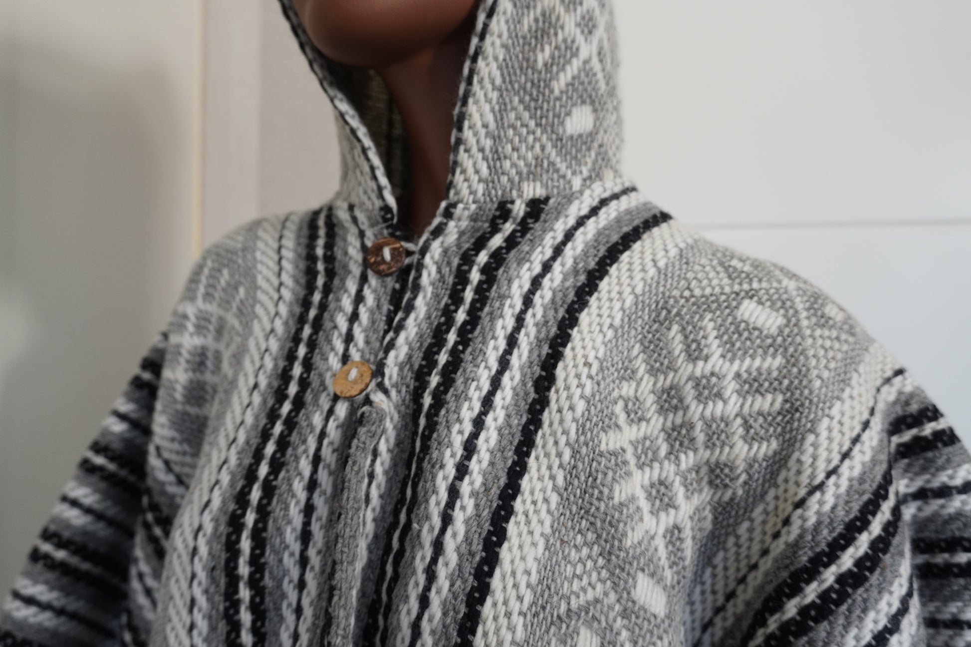 The premium poncho "Killa" is a handcrafted masterpiece made of 100% sheep's wool that stands out for its quality and warmth. Its name, which comes from Quechua, represents harmony, a quality reflected in its calm tones and linear composition.